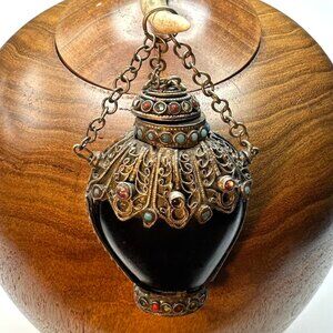 Antique Tibetan Horn Snuff Bottle with Semi-precious Stone Inlays — GUC