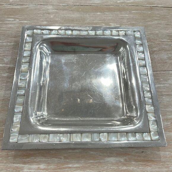 Antique Towle Silver Mother of Pearl & Aluminum Square Serving Tray 12 " x 12 "