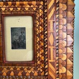 Antique Tramp Art Double Picture Frame Handmade Folk Art Cigar Boxes 28.5" Rustic
