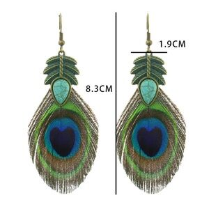 Antique Turquoise Peacock Feather Necklace and Earring Sets,