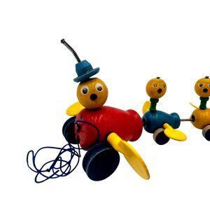 Take a trip down memory lane with these charming wooden pulltoys by Fisher Price. One is a pull toy featuring ducks who seem to have lost their sense of direction, and they're taking you along for the ride. The ducks look so surprised, they might just quack you up.