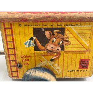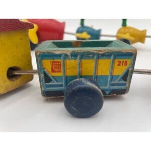 Antique Two Fisher-Price Wooden Pull Toys Train Cars & Duck Set