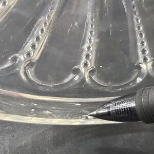 Lovely antique footage compote by US Glass Company. This is in the Kansas, (AKA Jewel With Dewdrop) pattern, and was produced in 19O1. This measure six inches high by 7.25 inches in diameter and is in great shape with no chips, cracks or breaks. It does have a few minor scuff marks and a couple very small scratches. See my pictures with pin. I also found a flaw in the pedestal base a V shaped straw mark, possibly from manufacturing process. After almost 120 years of being around, I'd say it's impossible not to have a few imperfections. They are really minor scuffs and scratches. This antique compote will be a great addition to your antique collection. Non smoking pet free home.