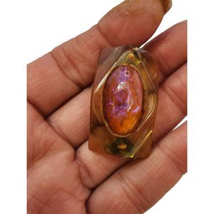 Antique Unique Apple Juice Bakelite with Dragons Breath Glass Cab Brooch (A3690)