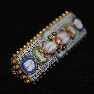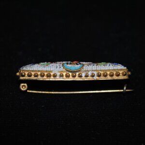 Antique Unique Micro Mosaic Bar Pin / Brooch with Feather Design