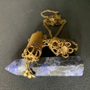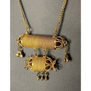 Antique & Unique Brass Necklace with tightly woven interlocking circular tubes ending with suspended links on each decorative sides