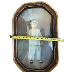 Antique VTG 1920's Framed Convex Bubble Glass Portrait of Young Girl 18.5"x 12"