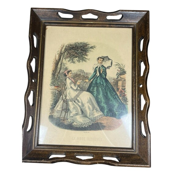 Antique VTG La Mode Illustree Paris French Fashion Framed Art Print Lot of 2