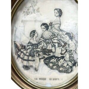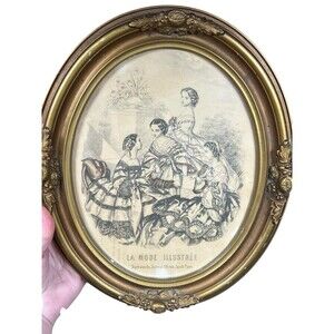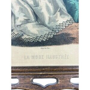 Add a touch of 19th-century Parisian elegance to your space with this stunning pair of antique La Mode Illustrée fashion lithographs. These charming prints depict Victorian-era women in ornate gowns, showcasing the timeless beauty of vintage French fashion illustration.