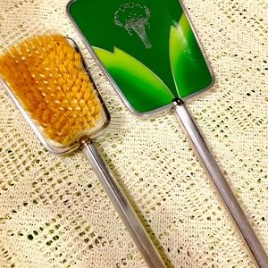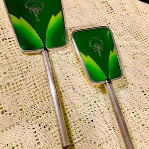 15 piece dresser/vanity bundle. Little bit of vintage and antiques included. Beautiful addition to any collection! 4 piece Amerith tray set from 1940. Emerald green and silver brush 9” and hand mirror 12” Mirror does have a crack. Mirrored tray with emerald detail 11”x6.5” shows signs of wear. Small lidded jar 2.5”x1.5”