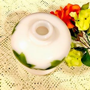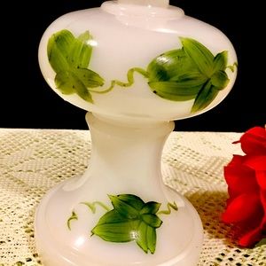 1940s milk glass accent lamp, with hand painted ivy leafs. Vintage flowers included. 7”x4.5” Has been gutted due to age of and fire hazard. 5 pieces of unmarked vintage costume jewelry.
