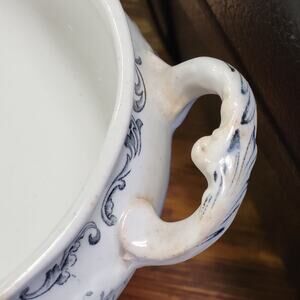 This Antique J.H.Weatherby & Sons, Semi-porcelain Trentham Blue and White China Vegetable Dish features a beautiful floral pattern. The J.H.W makers mark indicates that it was made between 1896 and 1925.