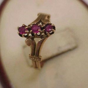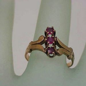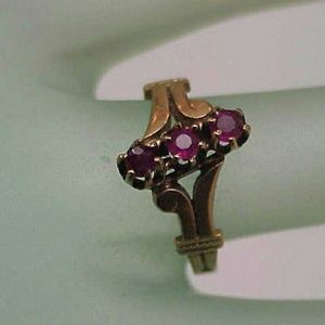 Antique Victorian 12k Yellow Gold 3 Genuine Rubies Ring