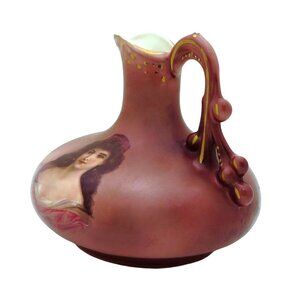 Antique Victorian 1890s Austria Enamel Portrait of Woman Mini Pitcher Vase