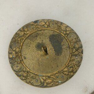 This exquisite Victorian button boasts intricate brass detailing and a central floral motif, adorned with black rhinestones. Its vintage charm is evident in the ornate design, reflecting the elegance of the era. A fine piece for collectors or to accentuate period garments with authentic antique flair.