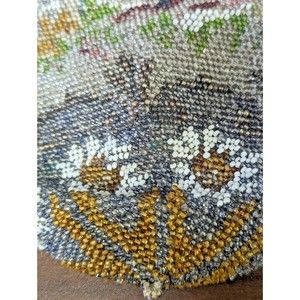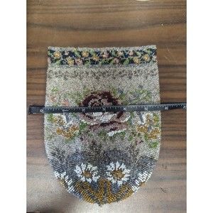 Antique Victorian Colorful Floral Roses & Daisies Glass Micro Beads Crochet Drawstring Purse. The item is about 7.5" x 6". is missing draw string, other then that it is in good condition with no missing beads.
