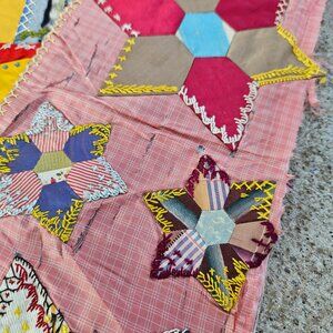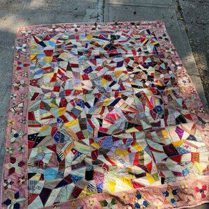 Antique Victorian Crazy Quilt Topper Embroidered 1800s 77" x 68" Silk *Fragile*