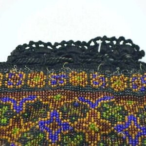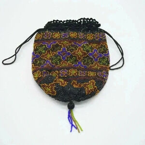 Antique Victorian Deco Floral Roses Glass Bead Purse Bucket Fringe Hand Beaded