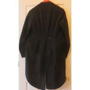 Authentic Antique Victorian Era Black Wool Tailcoat Got it from a friend whose relative was the original owner in England! Black Wool with silky black lining except sleeves which have ivory colored lining. Buttons accent sleeves and back as well as closing coat with a single button. Breast Pocket is an actual pocket unlike the faux ones these days