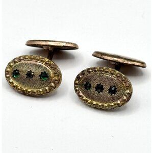 Antique Victorian Gold Filled Top Star Green Stone Cuff Links Cufflinks. Antique estate Victorian oval gold filled cuff links. Extremely detailed with raised border textured center and stars with stones under. Stunning antique cuff links. GM49RG.