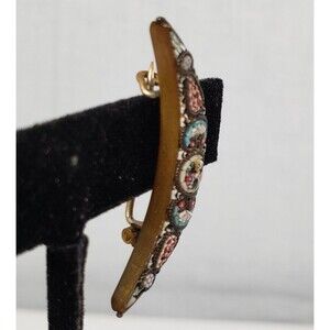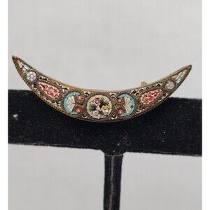 Antique Victorian 1990's Italy Micro Mosaic Cresent Moon Brass Frame Brooch Marked FAP