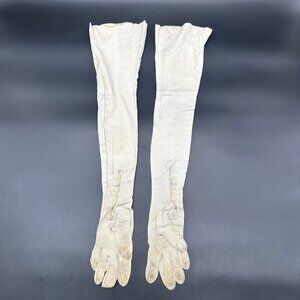 Antique Victorian Kid Leather Opera Gloves Long White Snaps Formal Wedding As Is