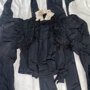 Sold as is. Last 5 button holes are torn at one side/could use a couple of stitches. (Not totally necessary, being there is a hook and eye at waist.) Slight separation/fraying at shoulder seams. Wear to collar. A couple pinholes and a number of small tears (underarms, puff sleeve.) Please see pictures. Repair/use for parts or pattern, display, or wear as is with care. A beautiful piece!