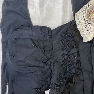 Antique Victorian Leg of Mutton Sleeve Jet Bead Silk Bodice Needlework 1890s