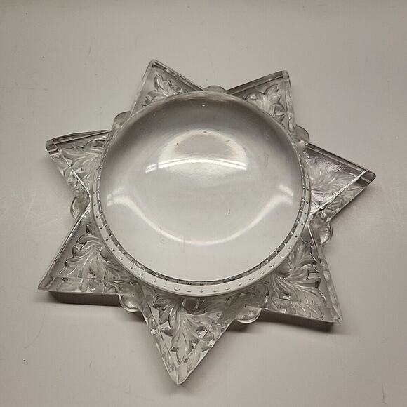 Antique Victorian Pressed Glass 7 Point Star Dome Magnifying Glass Paperweight