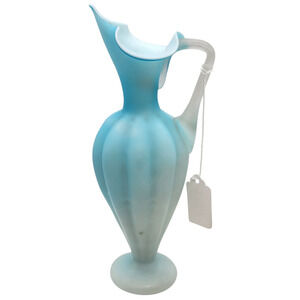 Antique Victorian Satin Glass Ewer Blue To White