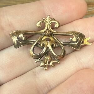 Antique Victorian Signed C.T. Gold Filled Fleur De Lis Floral Watch Pin Brooch