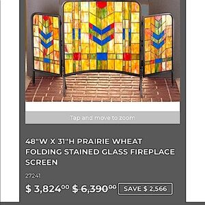 fireplace screen. Stained glass, Wrought Iron 3 folding panels that all separate. No damage. High quality construction and classic styling, this hearth accessory a perfect accent for any fireplace. Width approximately 48L" X 31"H and weighs