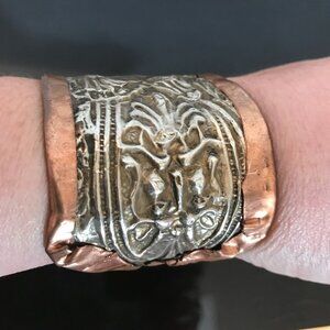 Thank you for looking at this one of a kind handmade bracelet, which is repurposed with new copper and rare antique art nouveau sterling silver, over 100 years old we forged , form folded the sterling silver over solid copper The bracelet is a one of a kind