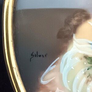 Antique Victorian Woman Miniature Porcelain Painting Wood Frame Signed Silver?