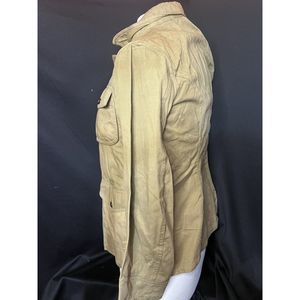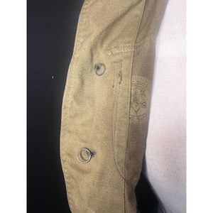 From the research, this appears to be an antique Boy Scouts of America uniform shirt dated from somewhere around the 1910s to 1920s era. This has the Sigmund Eisner Co. tag, who was the maker for BSA uniforms in this time frame. The address on the tag was used by Sigmund Eisner from the 1910s through the mid-1920s. It is a rare find for collectors of historical BSA memorabilia. The shirt, which belonged to a Boy Scouts organization member, does not have any patches sewn on but does have a name written in, adding to its unique and authentic character. The woggle-style neckerchief slide was found in the pocket and will go with this shirt. The back of the buttons say Eisner Red Bank, NJ.