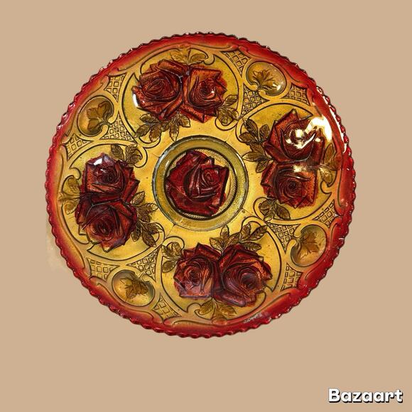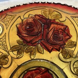Antique Vintage 1920's Red & Gold Roses Goofus Glass Plate/Platter 10 3/4"