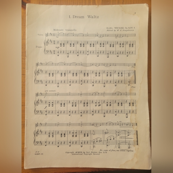 Antique Vintage 1930 Carl Fischer Violin & Piano Duets Sheet Music No Cover
