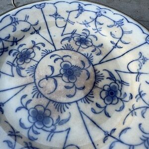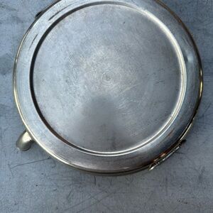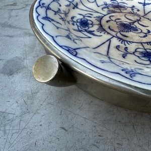 Antique / Vintage 9" Porcelain & Metal WARMING PLATE with Top Fill Hole