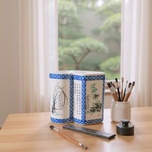 vintage chinese porcelain, antique chinese vase, brush pot porcelain, asian decor, chinoiserie vase, oriental home decor, hand painted porcelain, chinese calligraphy vase, vintage asian art, collectible porcelain, chinese brush holder, blue and white porcelain, floral porcelain vase, chinese decorative art, porcelain pen holder, traditional chinese decor, chinoiserie chic, asian antiques, porcelain desk accessory, vintage oriental vase
