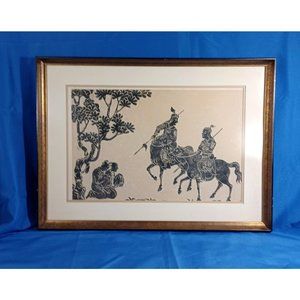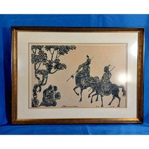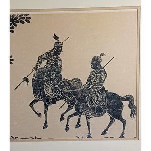NO FRAME!!!! Antique Vintage Chinese Wood Cut Block Print Hun Invasion Horse Soldier Peasants