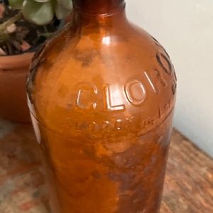 Vintage Antique Amber Brown Embossed Clorox Advertisement Glass Bottle