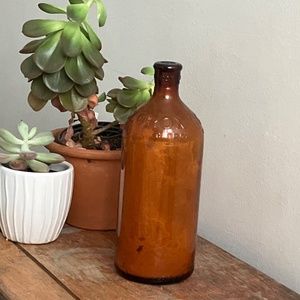 Antique Vintage Clorox Amber Brown Orange Glass Bottle Skinny Neck 16 Ounce