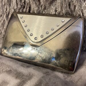 Antique/ Vintage Colibri of London Clear Bejeweled / Swarovski crystal silver Stainless Steel travel smoking Case w/Mirror