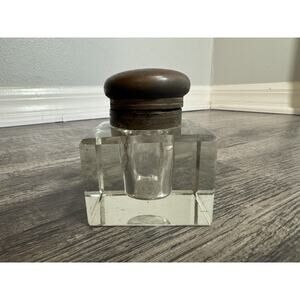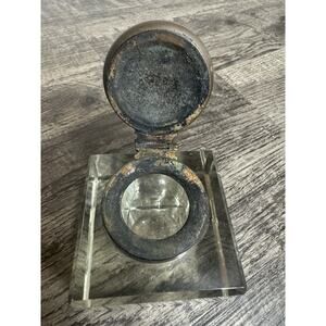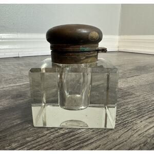 Antique Vintage Crystal Glass Block Ink Well Brass Lid Art Deco Cube Grandpacore