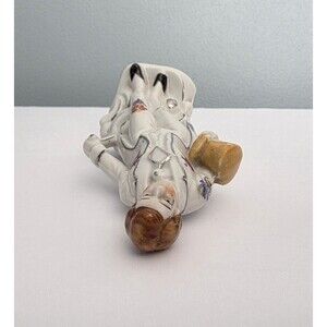 Antique Vintage Hand Painted Victorian Colonial Gentleman Made In Japan 5 Inches Tall. Glossy white man in period costume, holding a top hat. It is glossy white with floral accents. There are a couple of paint wear spots on the back of the head. Please see photos for measurements and condition.