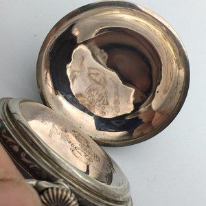 Antique / Vintage Lyst Glashute Niello Lovers Silver Rose Gold Pocket Watch Runs