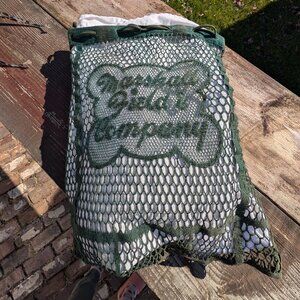 This great bag is a rare piece history from the now defunct, legendary Chicago department store. It is a very sturdy cotton crochet with a cotton canvas drawstring at the top. The company name is crocheted into the mesh on both sides of the bag. Measures 15" x 18. In terrific shape given it's age. Estimate it was made between 1890 and 1920. It would look wonderful framed and makes a nostalgic conversation piece.
