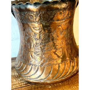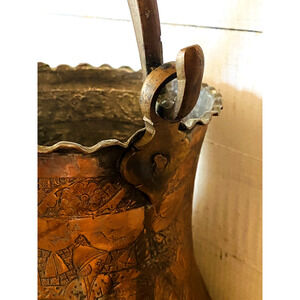 Antique Vintage Persian Copper Bucket Pot with Handle 13" Tall Top of Handle
