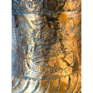 Add timeless charm and old-world craftsmanship to your home with this antique/vintage Persian copper bucket featuring a swing handle and hand-forged construction. Measuring approximately 13" tall to the top of the handle and 8.5" in diameter at its widest, this stunning piece showcases traditional Middle Eastern metalwork. A beautiful collectible piece that blends history, function, and timeless style.