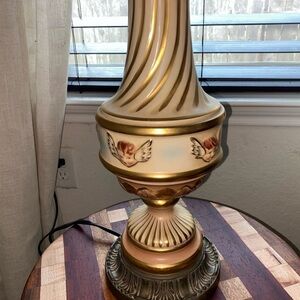Antique Vintage Porcelain Gilded Cream and Gold Mythical Religious Whimsical 28”Tall Table Lamp Electric plug-in